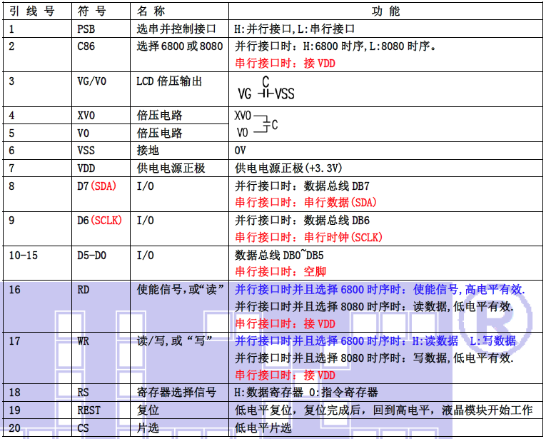 5. 指令功能强: 可软件调对比度、正显/反显转换、行列扫描方向可改(可旋转 180 度使用)。