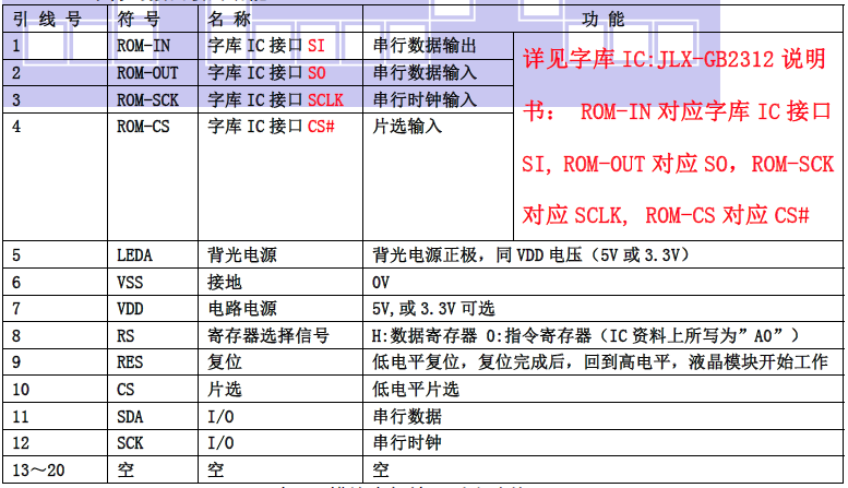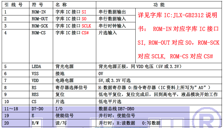 (1)模块并行接口引脚功能