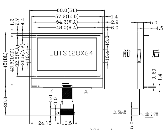 5. 指令功能强: 可软件调对比度、正显/反显转换、行列扫描方向可改(可旋转 180 度使用)。