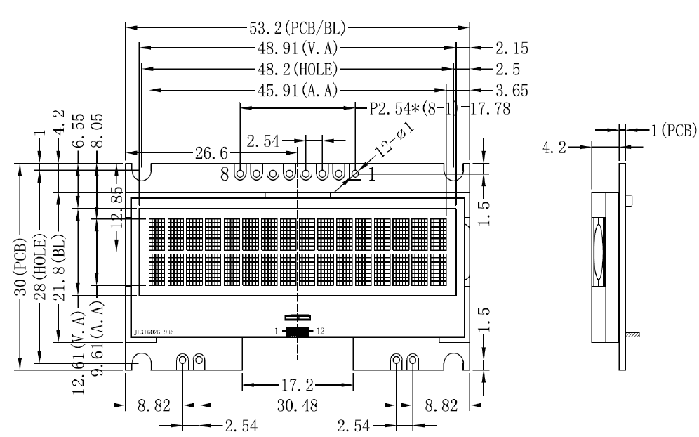 6.显示内容:256 种字符(5×8 点字型); 可自编 8 种(5×8)种字符,(注每显示一个界面最多可以达到 8 个自编字符,但更换显示界面后可再编)