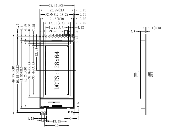 3. 功耗低: 不带背光1mW(3.3V*0.3mA),带背光不大于136mW(3.3V*41mA);