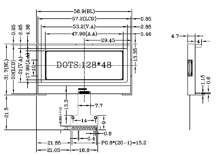 3.功耗低: 不带背光 1mW(3.3V*0.3mA),带背光不大于 150mW(3.3V*45mA);
