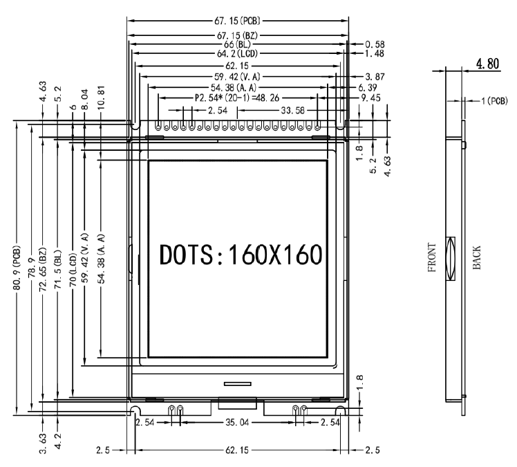 1. 结构轻、薄、带背光、带黑铁框、焊接式FPC。