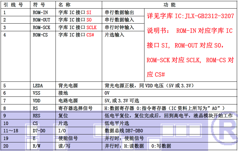 5. 指令功能强:可软件调对比度、正显/反显转换、行列扫描方向可改(可旋转180 度使用)。