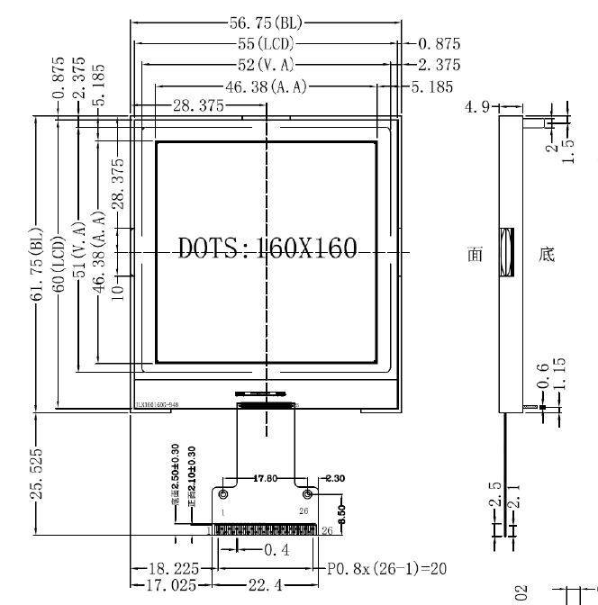 4. 接口简单方便:可采用4 线SPI 串行接口、并行接口,I2C 接口。