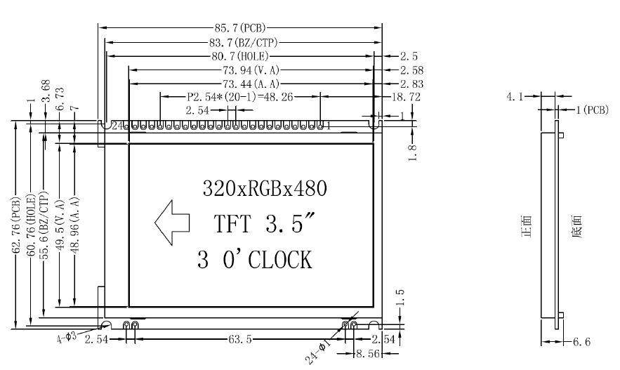 2. IC 采用ST7796S 及触摸芯片GT968,功能强大,稳定性好