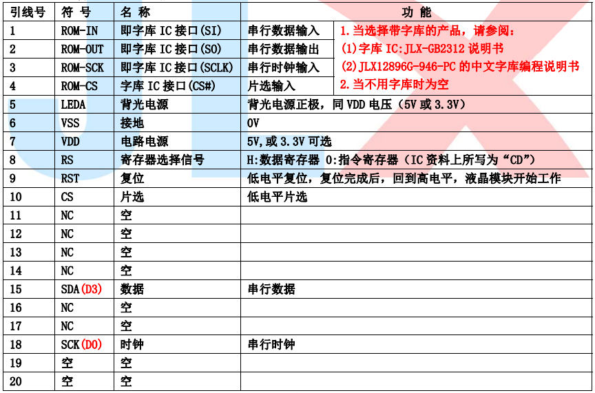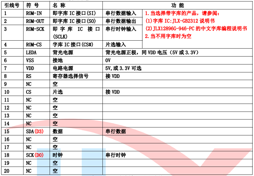 6. 接口简单方便:可选I²C 总线、4 线SPI 串口、6800 系列并口、8080 系列并口。