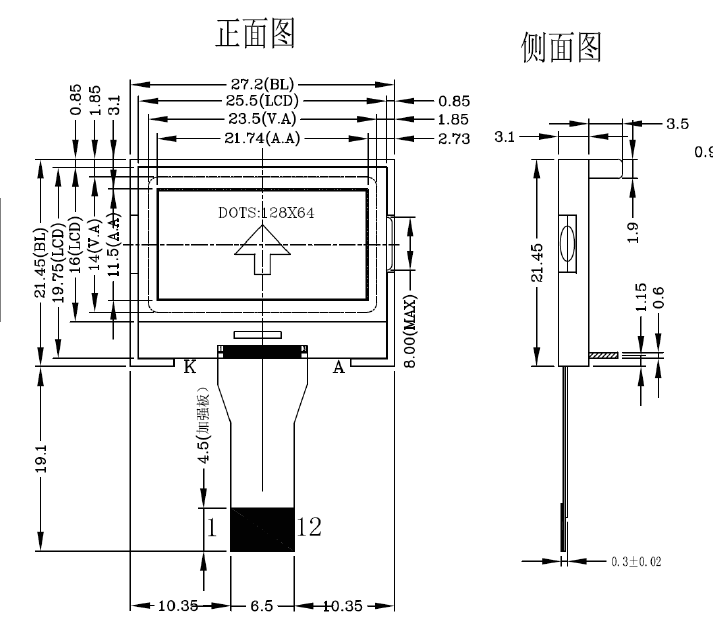 3.功耗低: 不带背光 1mW(3.3V*0.3mA),带背光不大于 70mW(3.3V*20mA);