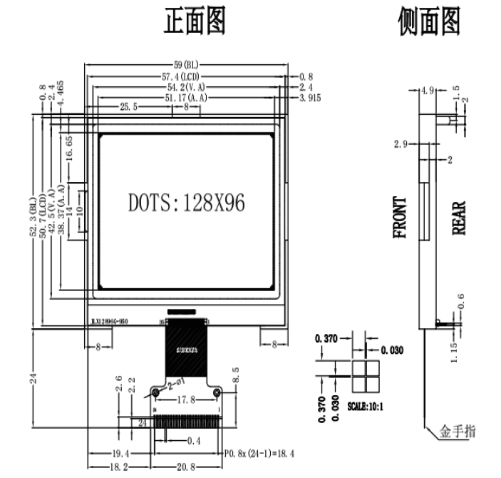 3.功耗低:1 - 270mW(不开背光1mW <3.3V@0.3mA>,开背光不大于270mW<3.3V@80mA>);