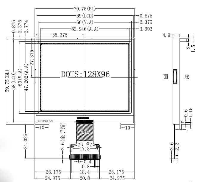 3.功耗低:1 - 270mW(不开背光1mW <3.3V@0.3mA>,开背光不大于270mW<3.3V@80mA>);