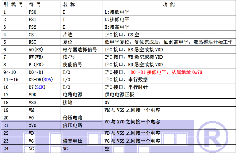 6. 接口简单方便:可选I²C 总线、4 线SPI 串口、并口(6800 时序或8080 时序可选择)。