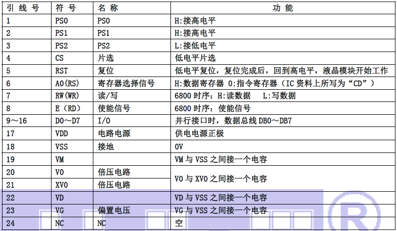 ●或显示21 个×12 行的5*8 点阵的英文、数字、符号。