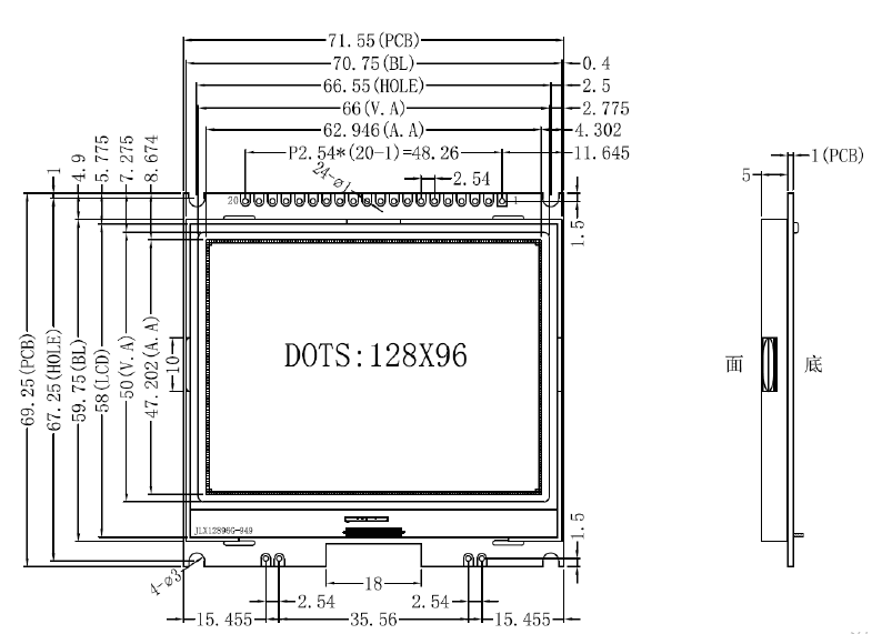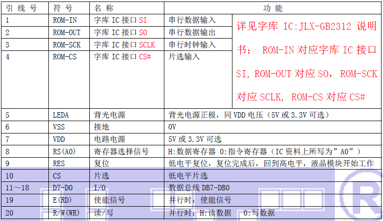 IC: ST7571 (驱动IC) +JLX-GB2312(字库IC)