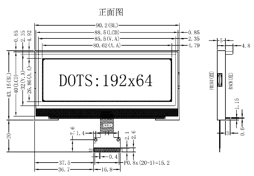 3. 功耗低:当电压为3.3V 时,功耗低:不带背光1.32mW(3.3V*0.4mA),带背光不大于333mW