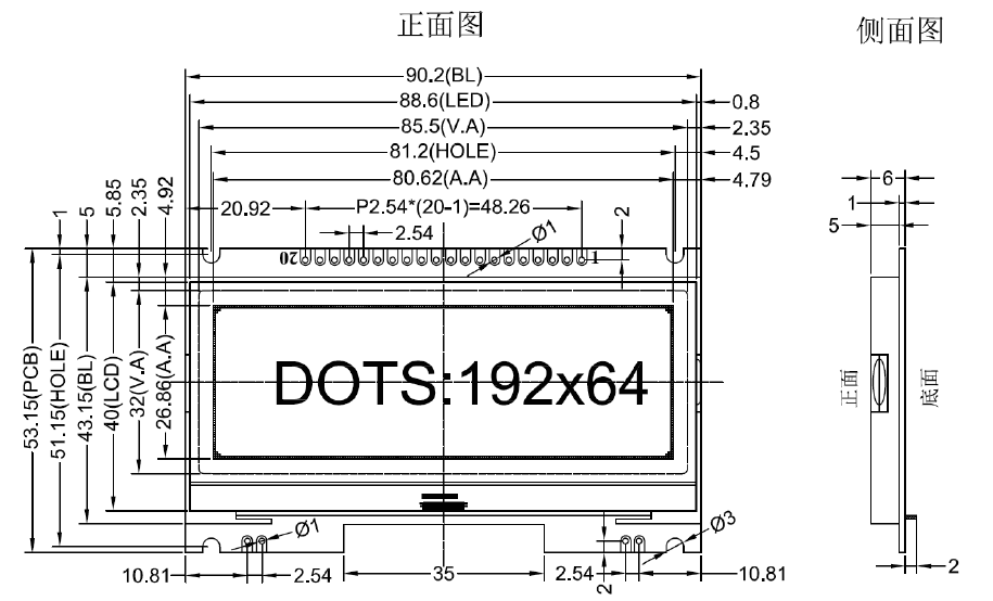 5. 指令功能强:可软件调对比度、正显/反显转换、行列扫描方向可改(可旋转180 度使用)。
