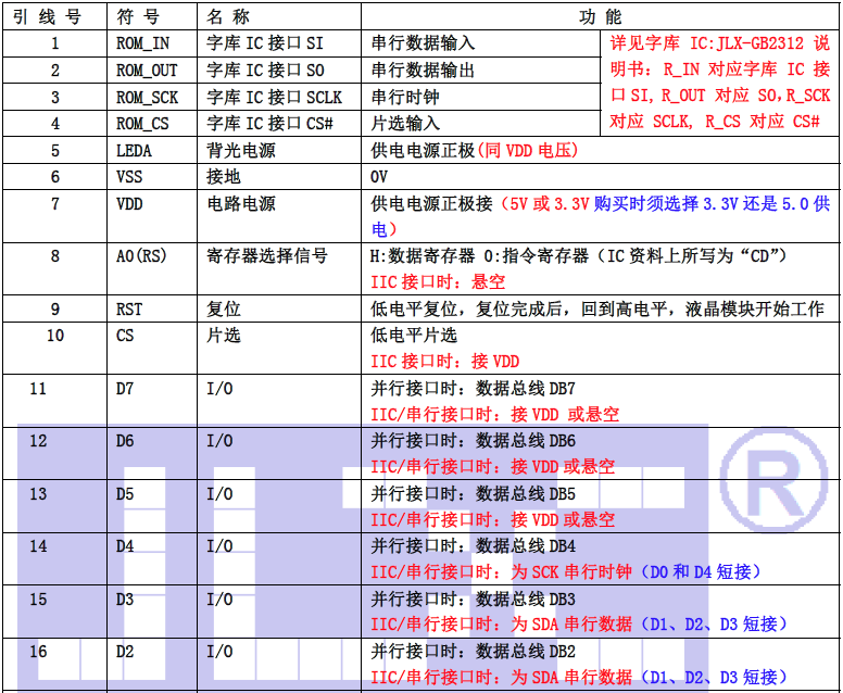 IC: ST7525(驱动IC) +JLX-GB2312(字库IC)