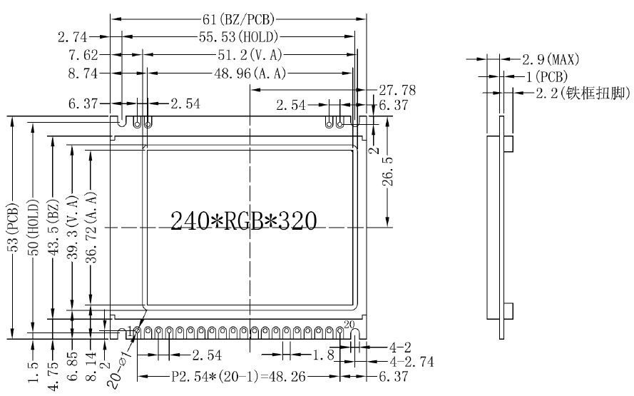 1. 结构轻、薄、带背光。 3. 显示内容: ●240*320 点阵彩色图片; ●可选用32*32 点阵或其他点阵的图片来自编汉字,按照32*32 点阵汉字来计算可显示10 个字/行*7 行。 ●可选用16*16 点阵或其他点阵的图片来自编汉字,按照16*16 点阵汉字来计算可显示20 个字/行*15 行。 4. 指令功能强:例如可以用指令控制显示内容顺时针旋转90、逆时针旋转90°或倒立竖放。 5. 接口简单方便:采用8 位并行接口。 6. 工作温度宽:-20℃ - 70℃;