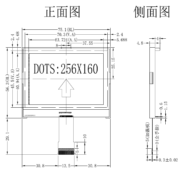 2. IC 采用矽创公司ST75256,功能强大,稳定性好