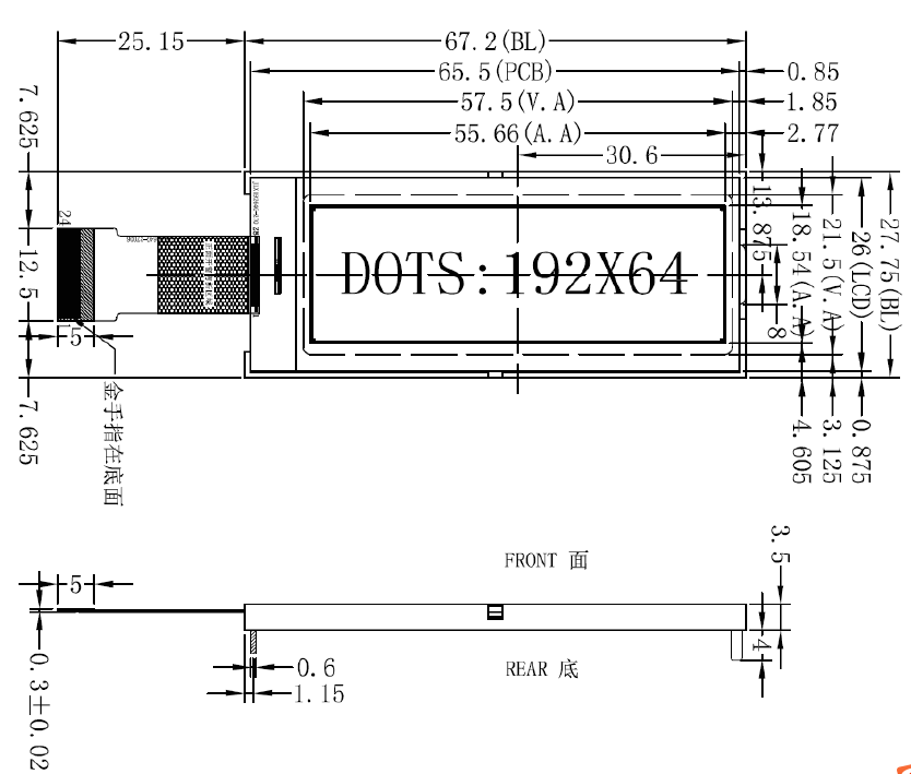 3. 功耗低:当电压为3.3V 时,功耗低:不带背光1.3mW(3.3V*0.39mA),带背光不大于101mW