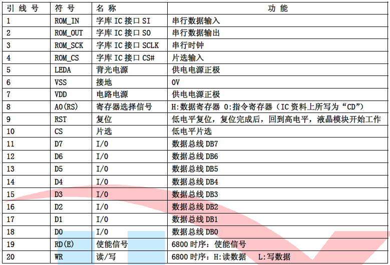 3. 功耗低:当电压为3.3V 时,功耗低:不带背光1mW(3.3V*0.3mA),带背光不大于100mW