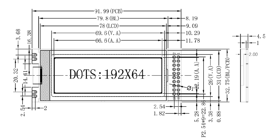5. 指令功能强:可软件调对比度、正显/反显转换、行列扫描方向可改(可旋转180 度使用)。