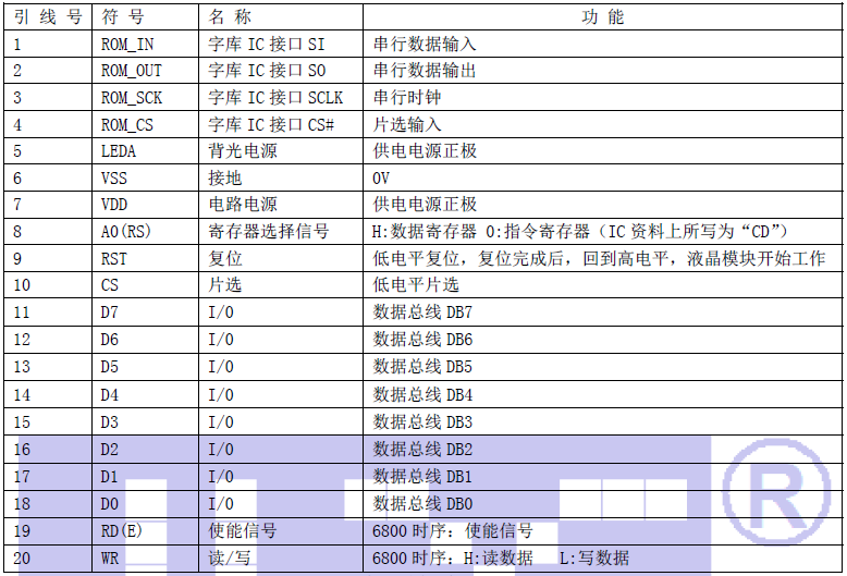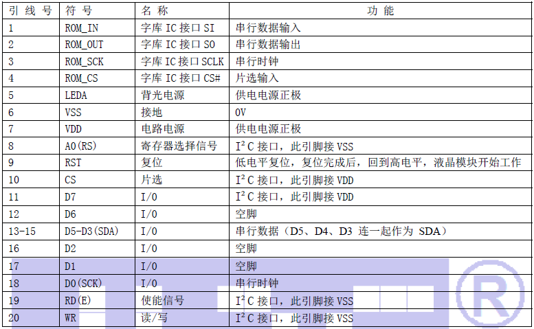 3. 功耗低:当电压为3.3V 时,功耗低:不带背光1mW(3.3V*0.3mA),带背光不大于100mW