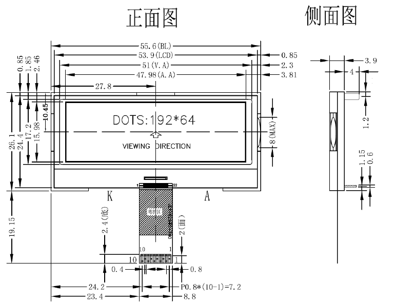 1.结构牢:背光带有挡墙,焊接式FPC。