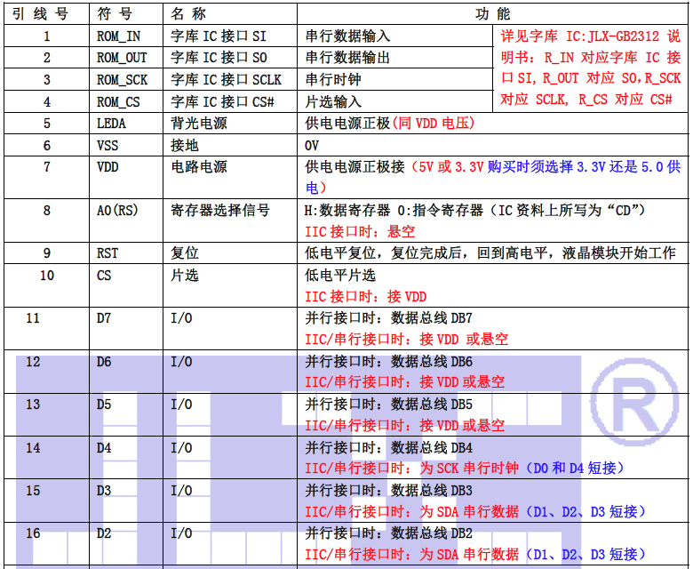 5. 指令功能强:可软件调对比度、正显/反显转换、行列扫描方向可改(可旋转180 度使用)。