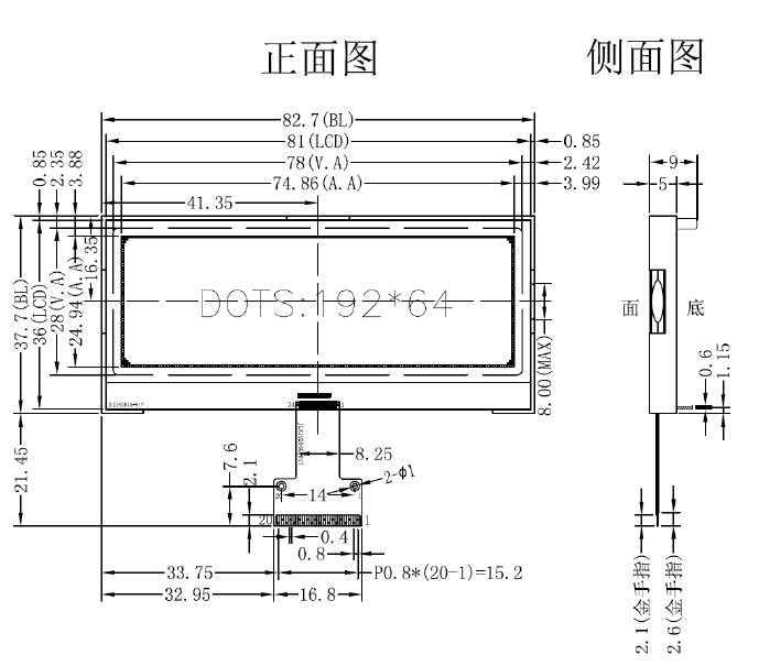 3.功耗低:当电压为3.3V 时,功耗低:不带背光1.32mW(3.3V*0.4mA),带背光不大于333mW