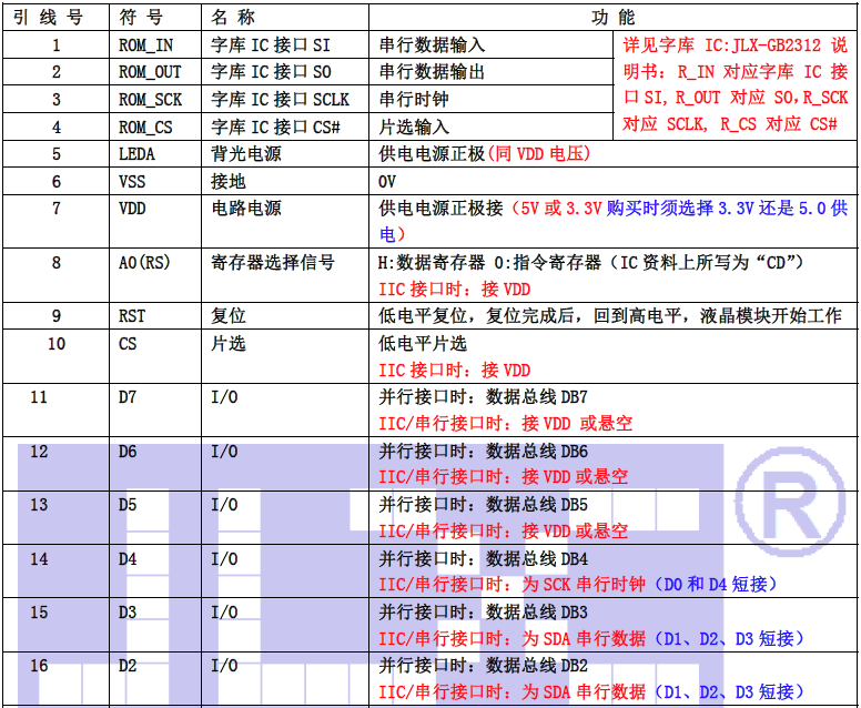 5.指令功能强:可软件调对比度、正显/反显转换、行列扫描方向可改(可旋转180 度使用)。