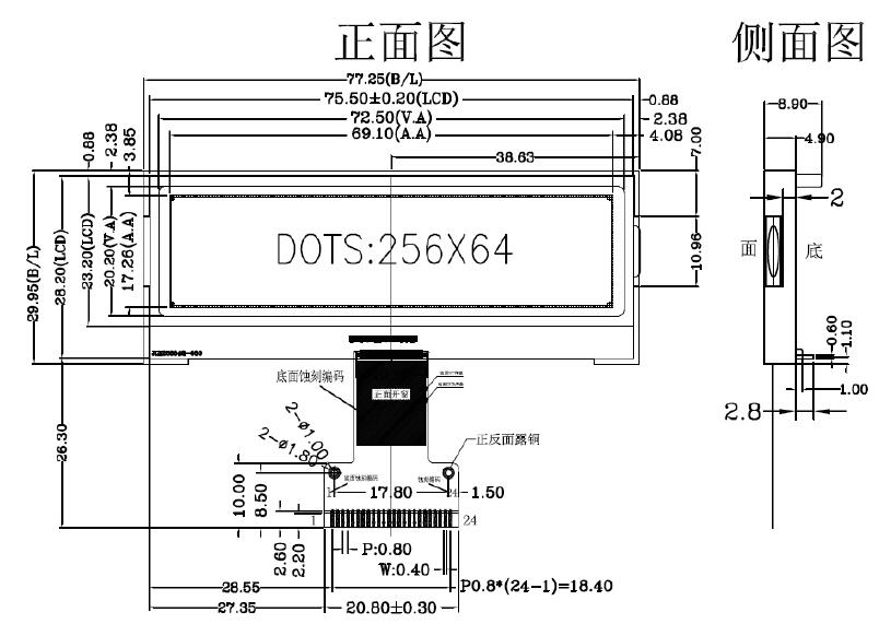 2.IC 采用矽创公司 ST75256,功能强大,稳定性好