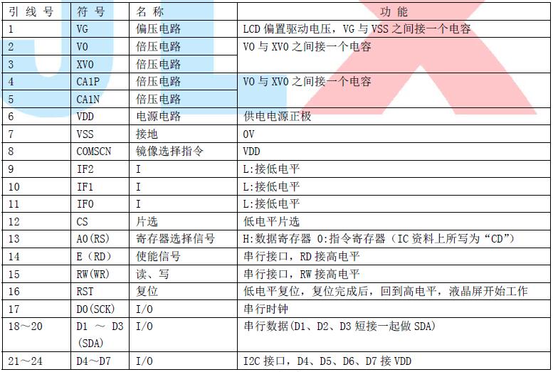 (2)四线串行时接口引脚功能