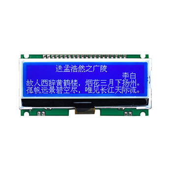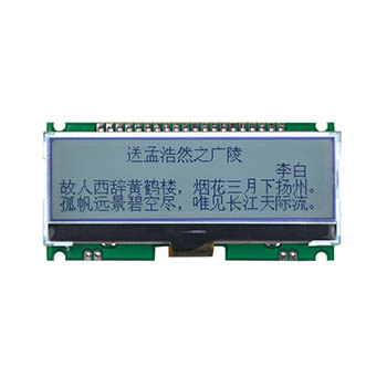 3. 功耗低: 不带背光 1mW(3.3V*0.3mA),带背光不大于 250mW(3.3V*75mA);