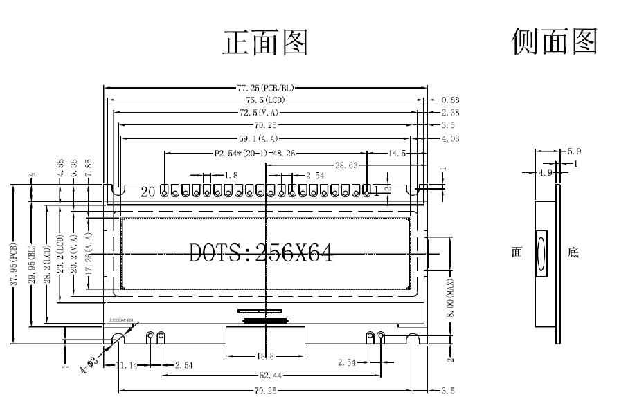 2. IC 采用矽创公司 ST75256,功能强大,稳定性好
