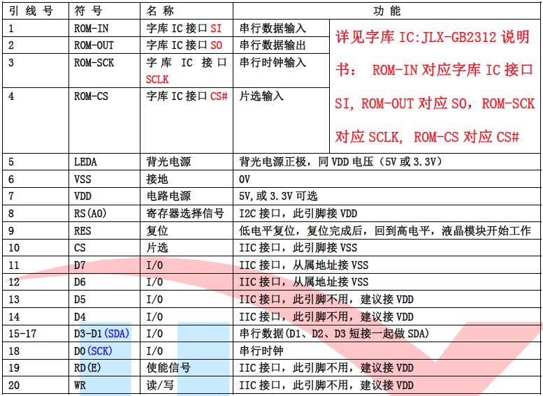 5. 指令功能强: 可软件调对比度、正显/反显转换、行列扫描方向可改(可旋转 180 度使用)。