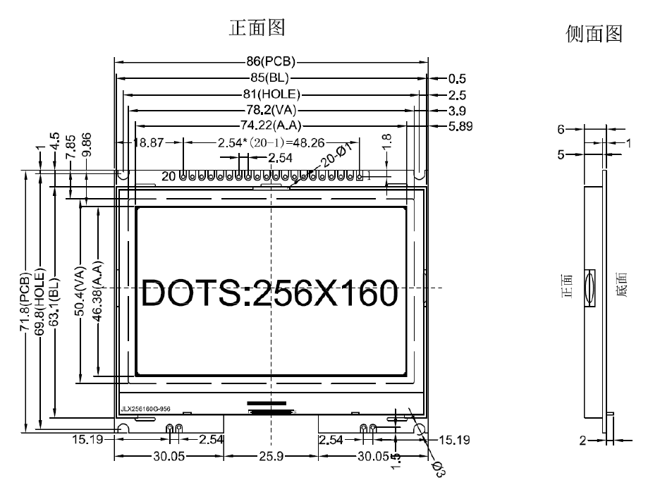 2. IC 采用矽创公司 ST75256,功能强大,稳定性好