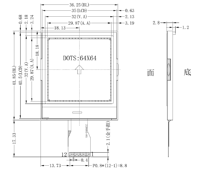 3.功耗低: 不带背光 1mW(3.3V*0.18mA),带背光不大于 100mW(3.3V*30mA);