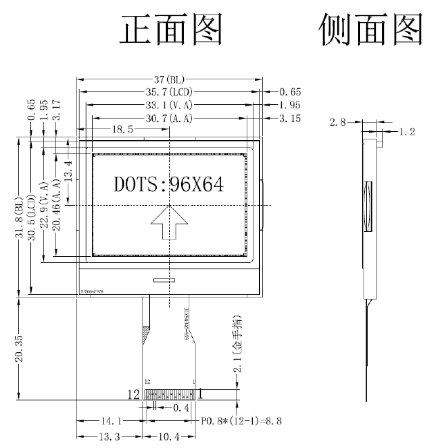 3. 功耗低: 不带背光1mW(3.3V*0.3mA),带背光不大于140mW(3.3V*30mA);