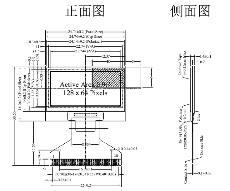 JLX12864OLED-096X(焊接式FPC)