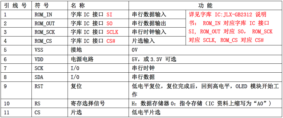 JLX12864OLED-096X-PC-S(带字库,串行接口)