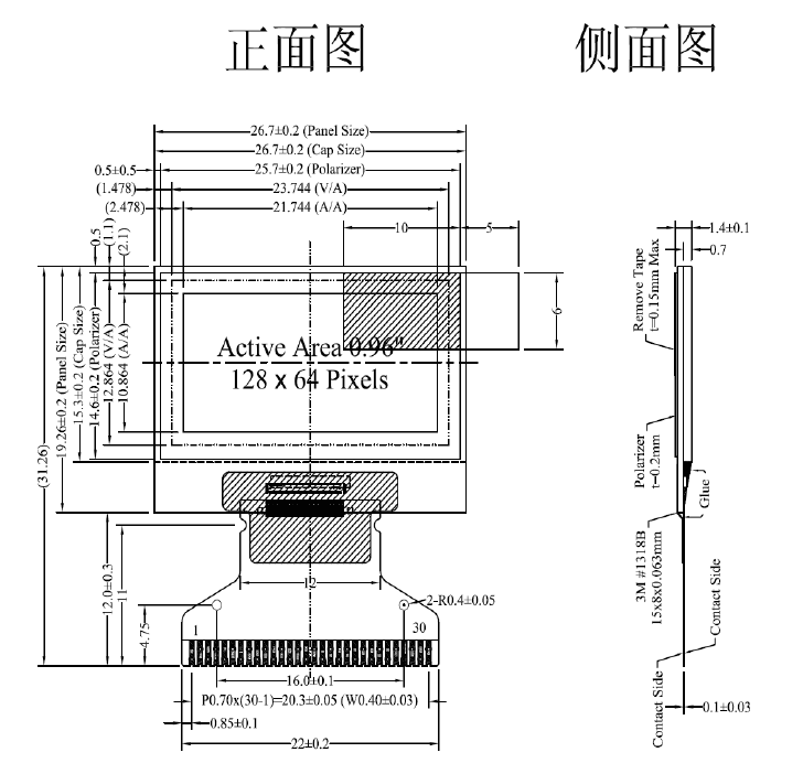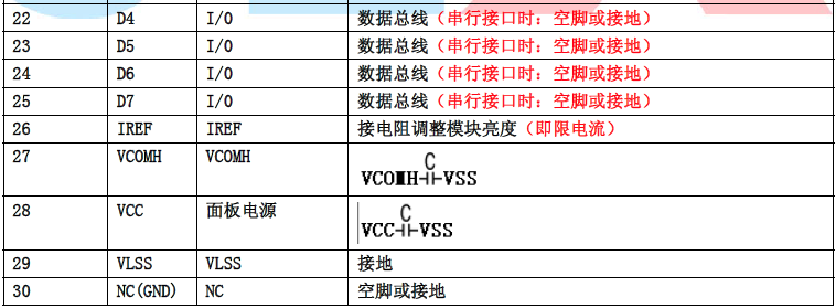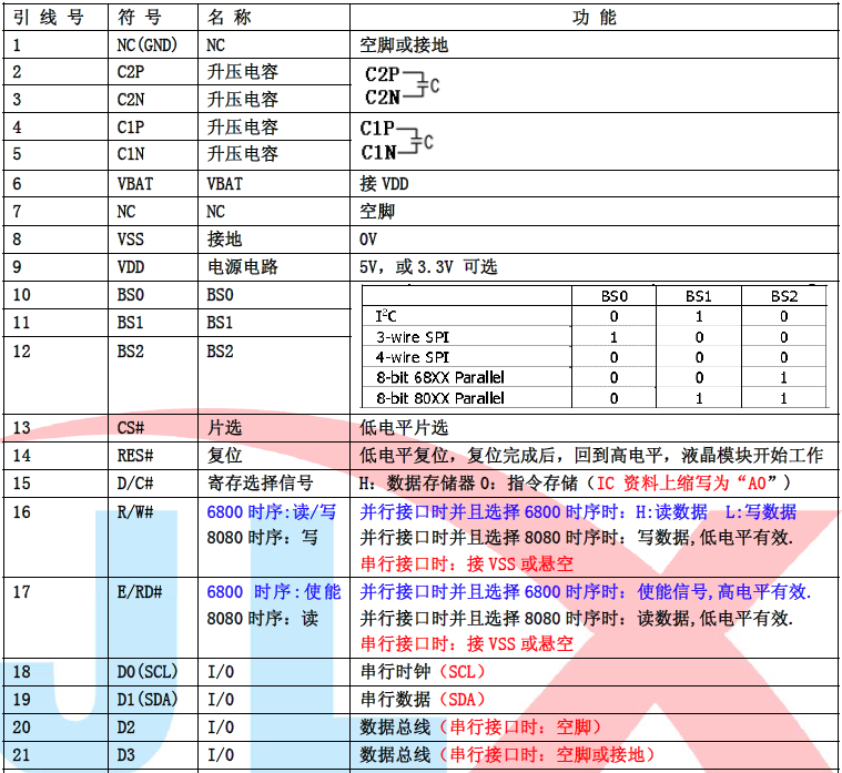 6. 接口方式: 3 线SPI 串行接口、4 线SPI 串行接口、并口、I2C 接口。