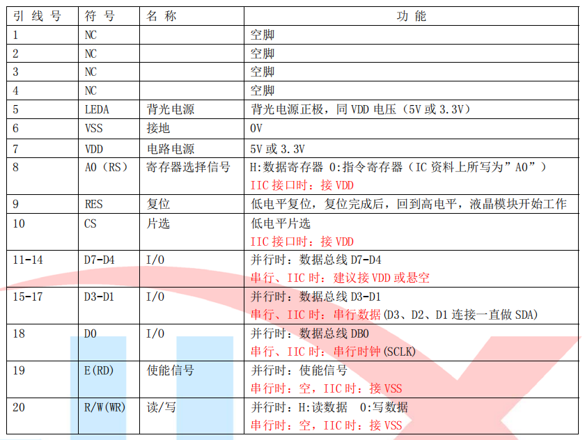 6.接口简单方便: 可采用IIC接口,4 线 SPI 串口,或选择并口(6800 时序和 8080 时序可选)。