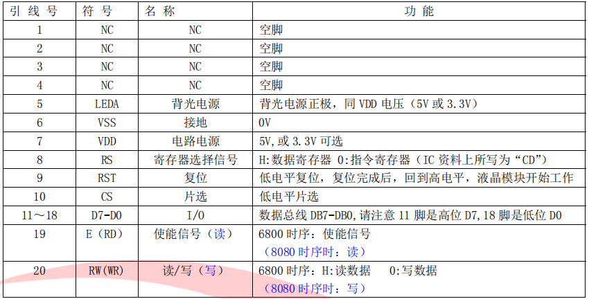 (1)并行时接口引脚功能