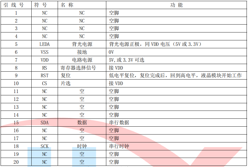 (2)四线串行时接口引脚功能