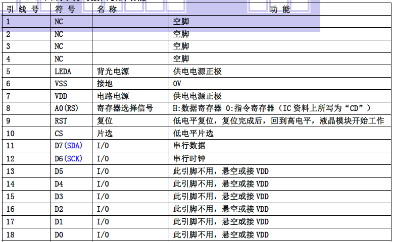 (2)四线串行时接口引脚功能