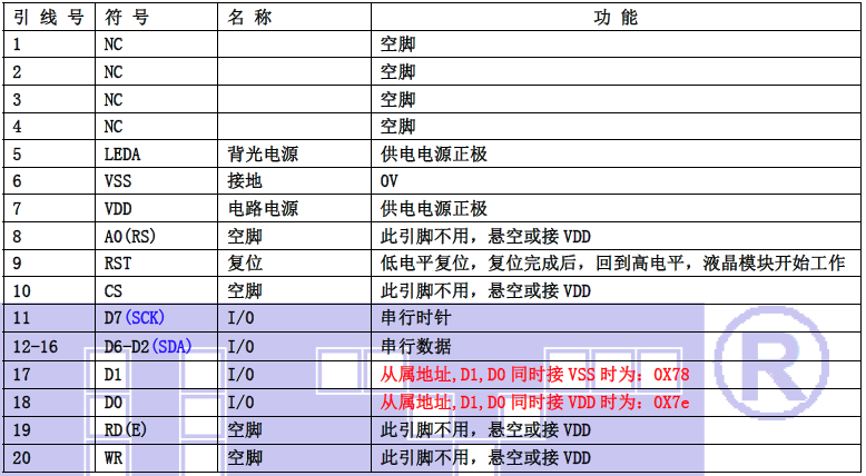 6. 接口简单方便:可选I²C 总线、4 线SPI 串口、并口(6800 时序或8080 时序可选择)。