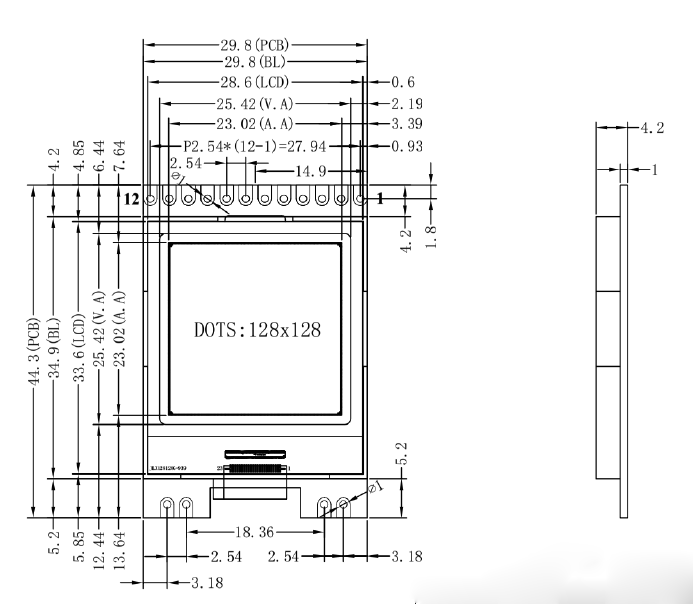 ●或显示16 个×8 行=128 个的8*16 点阵的英文、数字、符号。