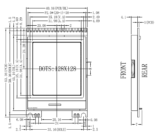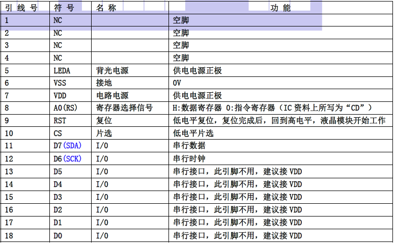 ●或显示16 个×8 行=128 个的8*16 点阵的英文、数字、符号。