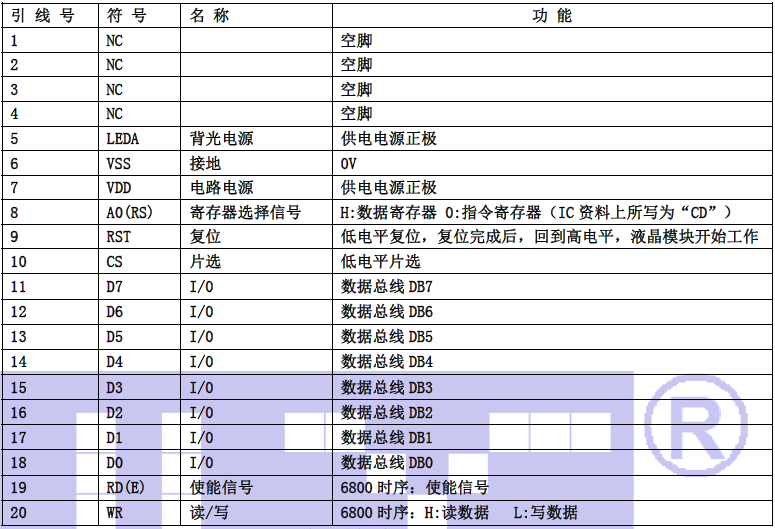 6.接口简单方便:可选I²C 总线、4 线SPI 串口、并口(6800 时序或8080 时序可选择)。