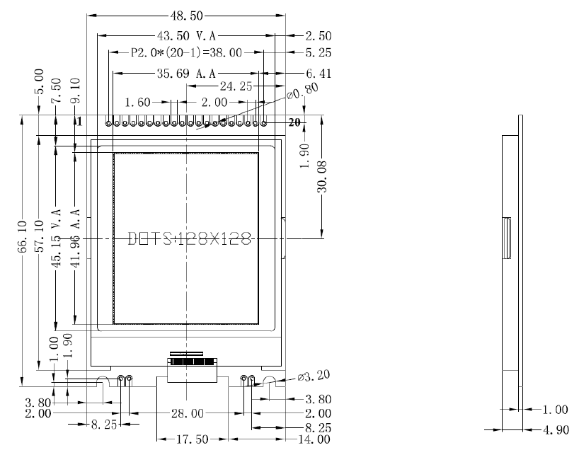 ●或显示16 个×8 行=128 个的8*16 点阵的英文、数字、符号。
